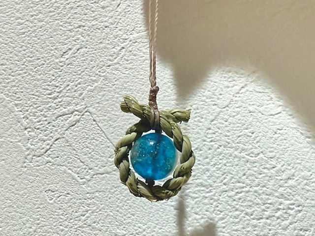 まこものしめ縄 とんぼ玉ストラップ ブルー(蓄光)