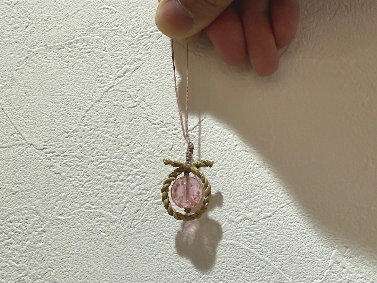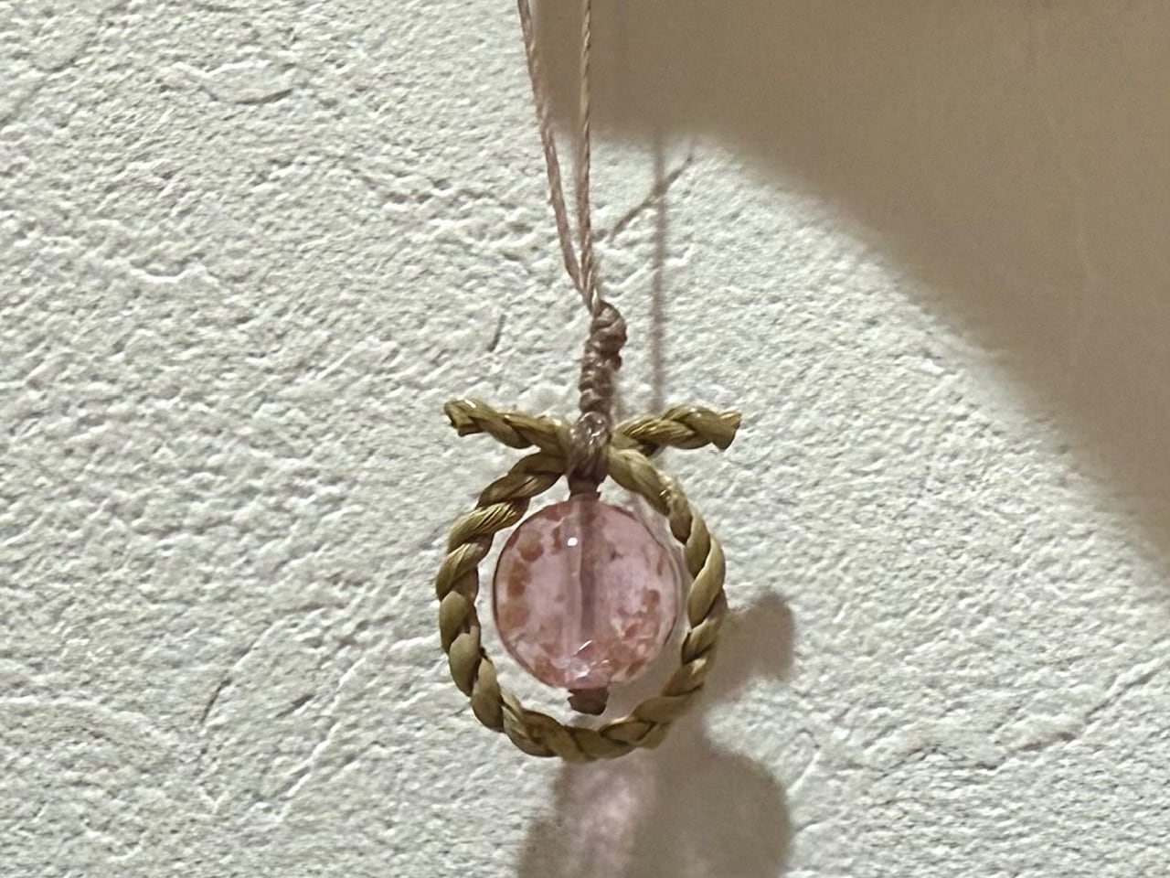 まこものしめ縄 とんぼ玉ストラップ ピンク(蓄光)